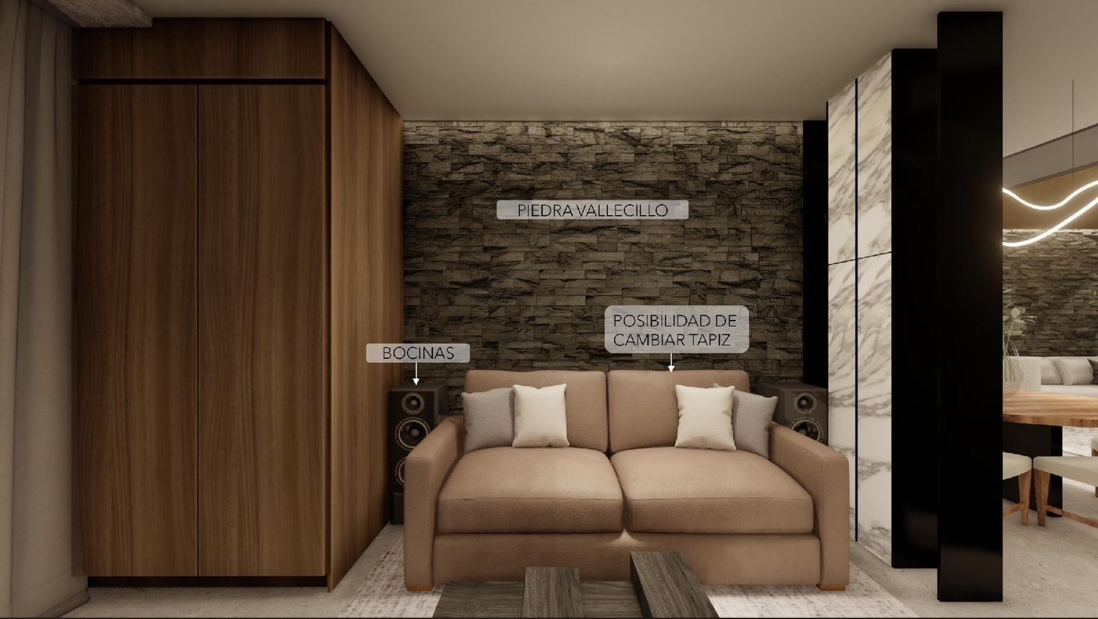 El departamento se entrega en obra gris incluyendo el aire acondicionado y el material aislante en el piso.