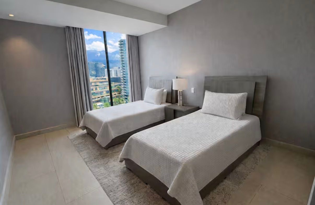 Departamento en Torre Dana situado en el piso 9 completamente amueblado y equipado de 157m2. El departamento cuenta con área social anexo a una terraza con increíbles vistas panorámicas, tres recámaras, con espacios amplios de closets, una cocina totalmente equipada y centro de lavado. Incluye 3 cajones de estacionamiento.